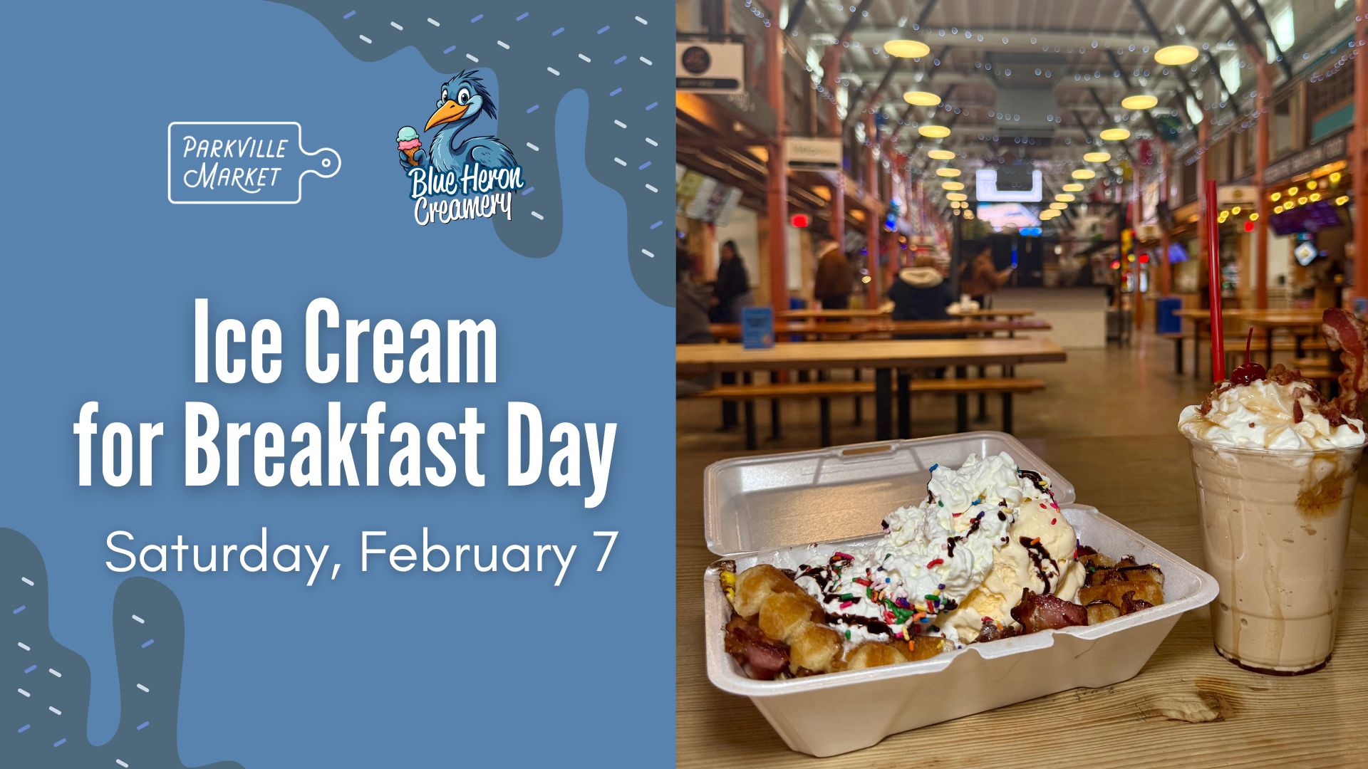 Ice cream before noon? Absolutely. Celebrate Ice Cream for Breakfast Day at Parkville Market with Blue Heron Creamery on Saturday, February 7. Stop by for breakfast-inspired specials like the Waffle Ice Cream Sundae and Maple Bacon Milkshake—sweet, indulgent, and totally worth it.